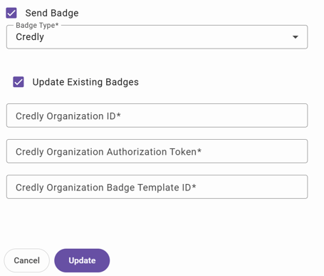 - Organizations Admins will need to ensure the Send Badge checkbox is ticked on.
