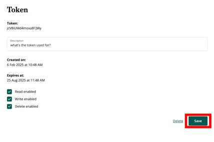 - When using basic token authentication, access is granted based on specific actions — read, write, or delete. The token provides full authorization to the web service API on behalf of your organization. Because it allows broad system access, treat this token with the same level of security and confidentiality as an administrator password.